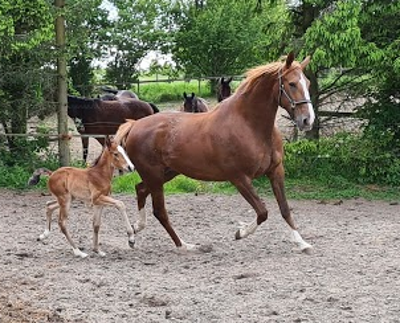 Hos Tonny Lerche i Langstrup ved Fredensborg har Bon Voyage Vixi fรธdt hingstfรธl efter Wishing Stone.