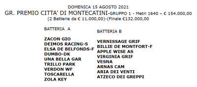 Gran Premio Citta di Montecatini køres med to indledende heat, hver med otte deltagere og fordelingen i heats er sket ,og her er Dumbo kommet i samme heat som bl.a. Zacon Gio og Erik Bondo-trænede Deimos Racing.