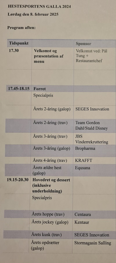 Hestesportens Galla fortsรฆtter lรธrdag aften, hvor man afslรธrer vinderne af de sidste 16 kategorier plus to specialpriser.
