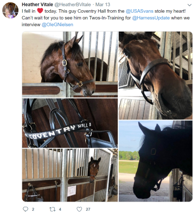 Den amerikanske travsportsjournalist, Heather Vitale er faldet pladask for Keld Gregersens 2-รฅring Coventry Hall, der er i trรฆning hos ร ke Svanstedt.