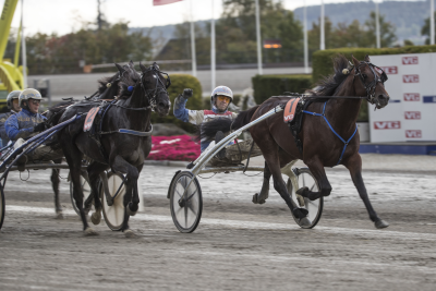 Cokstile vinder Derbyet, der var sidste afdeling i V75-spillet, foran Shocking Superman, og udlรฆser dermed gevinsten pรฅ 16 millioner. Foto Kanal 75