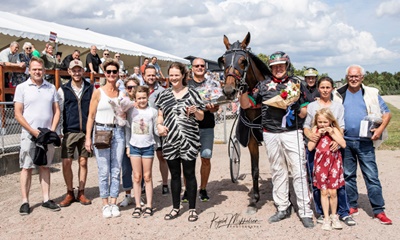 Glรฆde i vindercirklen efter Handsome Henry A W’s sejr. Foto: Kjeld Mikkelsen