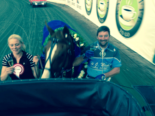 Axel pรฅ รฆresrunde flankeret af Ellen Piltoft og Henrik Lรธnborg. Foto taget af opdrรฆtteren Preben Sรธrensen
