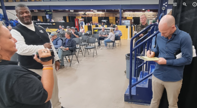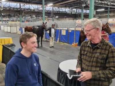 Bo Westergaard var meget aktiv på fredagens i auktion i Harrisburg, og bød på flere heste – to heste fik han hammerslaget på, men på to andre blev han så at sige slået på målstregen!