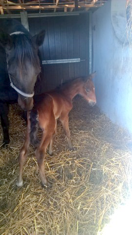 Årets første føl hos Peter Simoni blev et hoppeføl efter Bold Eagle.