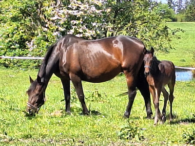 Udover Somewhere har parret Mariann T. Nielsen og Theo Damsgaard hjemme i Mønsted endnu en følhoppe, June June, der for en måned siden har født hoppeføl – også efter Helpisontheway, og det trives flot.