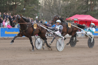 På fjerdepladsen sidste års finske derbyvinder Elian Web med Jorma Kontio, der fløj til spids fra spor otte og lagde ud med 1.07.5/500 m – og derefter sørgede for et pænt tempo – 1.10.0/1000 m!