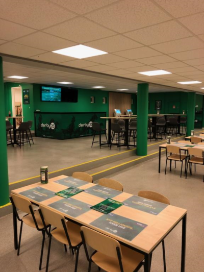 Onsdag blev håndværkere færdige med at indrette den nye Derby25-lounge, der er beliggende i den ene ende af spillehallen i underetagen i tribunebygningen