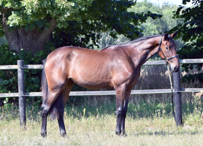 Desværre døde hendes første afkom, en hoppe efter Muscle Hill som åring.