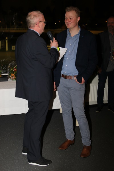 Med 42 heste pรฅ trรฆningslisten driver Pauli Andersen en af landets stรธrste travstalde, men har ogsรฅ en uvurderlig hjรฆlp i sรธnnen Kenneth Andersen, som ved gรฅrsdagens championatsfest ogsรฅ blev hyldet (foto herunder) for endnu et jockeychampionat pรฅ Racing Arena Aalborg.
