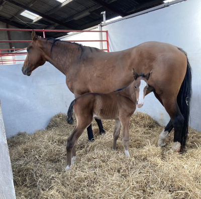 Hos LN Trotting i Sæby har den franske hoppe, Paquita des Bordes født hingstføl efter svenske Green Manalishi.
