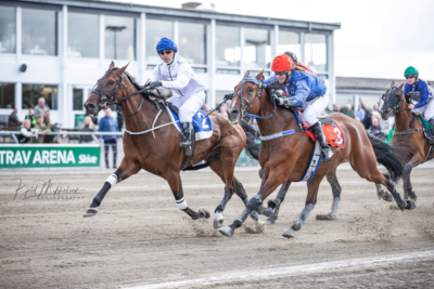 Eros Zola sad tidligt i spids og fรธrte hele vejen, men i oplรธbet kom Diamant ร˜stervang med Tineke Borup i et stรฆrkt angreb i open stretch og var tรฆt pรฅ at fange storfavoritten.