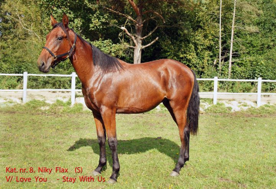 Niky Flax er en 4-รฅrig vallak efter Love You, som solgtes pรฅ Kriterie-auktion 2014 for 80.000 SEK til Johan Untersteiner.