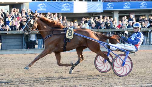 Det var femte gang træner Peter Jensen sendte Total Value til start og efter at have bygget hesten op i løb herhjemme, var den nu klar til V75 og en førstepræmie på 100.000 SEK:
