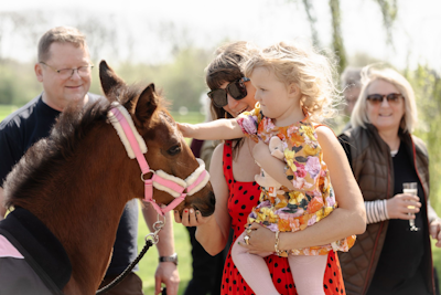 Naja Rosa var med på ideen og indvilgede i at komme til Rejsby for at døbe føllet og havde taget sit band med sig.