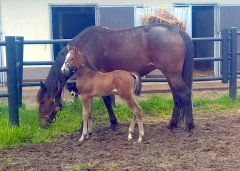 Nu har hun fået sit første føl hos Peter Simoni, Stutteri Simoni – et hingsføl efter Orlando Vici.