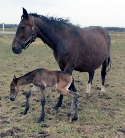 Opdrætterforeningens formand, Mikkel Stub har seks følhopper, der skal fole i år – nu har den første gjort folet,