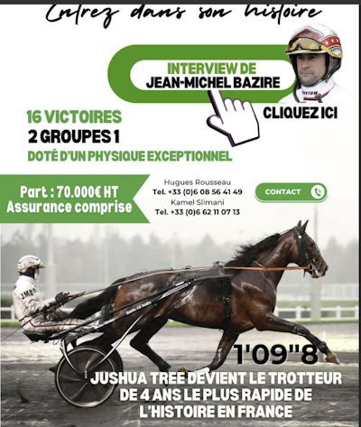 Efter sejren i Criterium Continental 2023 fik Jushua Tree et wild card til at starte i Prix dโAmerique, men Jean Michel Bazire, der har meget hรธje tanker om denne hest, afslog at starte โ hesten er ikke moden nok til at starte i Prix dโAmerique endnu, sagde Bazire.
