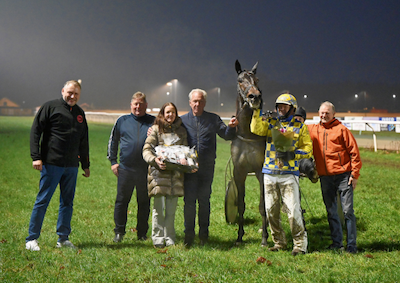 Der er garanteret fest i Restaurant Wienerstuen i Odense i aften efter den 3-รฅrige hoppe, Cruzado Oscuro med sin trรฆner John Kรธhler vandt 3. lรธb pรฅ Fyens Vรฆddelรธbsbane fredag eftermiddag.