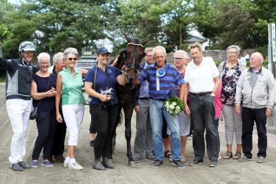 Mange af ejerne i Stald Challenger var pรฅ Lunden i sรธndags og kunne glรฆde sig over Chio Gilbaks fine sejr i Derbyprรธven. Foto Martin Timm Holmstav