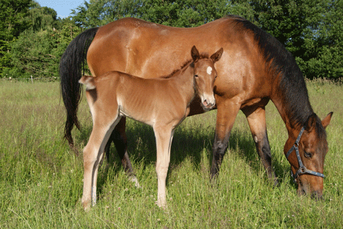 Hos Bo Jondahl i Herfølge har Elegante Frøkjær netop født hoppeføl efter Broad Bahn.Elegante-Froekjaer2016
