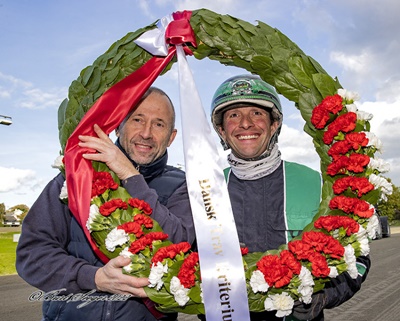 Sรฅdan! En glad Jan Dahlgaard vinder Dansk Trav Kriterium med Howlingatthemoon. Foto: Burt Seeger