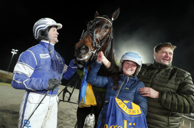 Dobbeltsejr til Svante Båth i Uppfödningslöpning bragte smilene frem. Foto Kanal 75