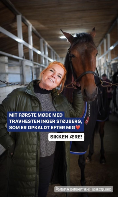 Der findes nemlig to heste, der er opkaldt efter Inger Støjberg – galophesten Støjberg, der nu er fire år, og travhesten Inger Støjberg, der er tre år og nu står foran sin snarlige debut i løb.