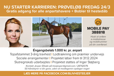Den 3-årige Inger Støjberg er en anpartshest, hvor man bliver medejer for et engangsbeløb på 1.000 kroner.