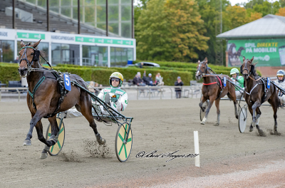 Overlegen sejr i 1.14.6a/2000 m โ der var 20 meter+ ned til forfรธlgerne af hvilke Lars Marcussens Gary la Marc med Birger Jรธrgensen viste sig bedst og blev nummer to i 1.15.3 foran Kenneth P Hansens tapre Giant Design med Rene Kjรฆr i 1.15.5.