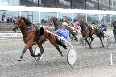 Hesten er svenskfรธdt. Kusken arbejder stadig i dansk travsport, men har skiftet kรธredragt siden.
