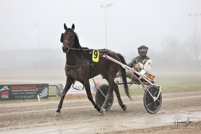 I 1. løb kører Henrik Lønborg Gaghan Frisco, der er vinder i næstsidste start.