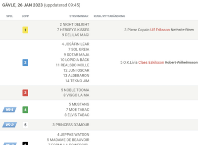 Baneprogrammet til Gävle(Solvalla) kan hentes på dette link – klik her