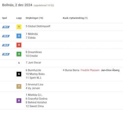 Bollnäs skulle i dag have afviklet Lunch-løbene, men på grund af baneforholdene er løbene nu flyttet til Gävle.