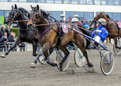 I fjor var Nakoda Goj med Bjørn Goop den store overraskelse i V75-spillet, da den vandt stayerløbet til 24 gange pengene. Foto Burt Seeger