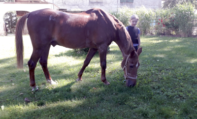 -Han kan rides af store som små, og har været mange ryttere en god læremester gennem årene. Net Line har slet ikke forandret sig og i de sidste 20 år har dyrlægen kun haft fat i Net Line for at give den en indsprøjtning. Vi passer ham med ormekur og smed. Net Line har tabt nogle tænder, men vi fodrer ham med Biowiesen Cob og hø, og han holder sig godt.