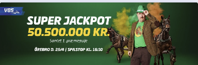 Lørdagens største spiltrækplaster er dog V85 på Örebro, hvor der er 50,5 millioner kroner i jackpot til otterne. V85-studiet starter kl. 15.00 med Martin Nørlem, Rikke Munk Sørensen og Palle Vennekilde, og der er spilstop kl. 16.10. På jackpotsiden til V85 på Örebro kan man læse optakterne og købe en lynkupon fra 50 kroner.