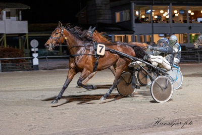 Morten Friis havde en god fin aften i Skive, idet han udover sejren med Dandit også vandt med Ekstra Bladets Travklubs hest, Freja Skovsende.