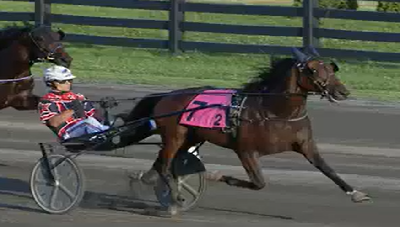 Braxten Boyd sad i sulkyen vaf Queen of America, der trรฆnes af Ron Burke. Vindertiden var 1.10.5a/1609 m med en afslutning efter 1.09.5/400 m.