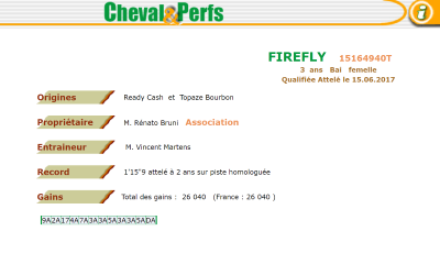 Der er bare det, at hvis man slår Firefly op i det franske centralforbunds register, så er hesten ejet af Renato Bruni, Dubai og i træning hos Vincent Martens.