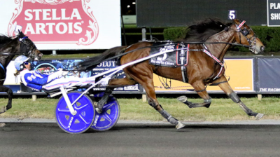 Men først var det italienske Funny Gio med Alessandro Gocciadoro, der gik forbi og ude i banen strøg Allegiant med ôrjan Kihlström forbi dem begge til sikker sejr i 1.09.4a/1640 m – Funny Gio nummer to i 1.09.8 og Bourbonista nummer tre i 1.09.9 – en flot rekordforbedring fra 1.13.0!!