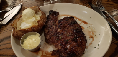Malones signaturret er en 16 Ounce Ribeye af USDA-kød – fås få omkring 50 dollars, men så følger der også en stor portion salat og f.eks. en bagt kartoffel med.