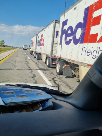Vi bemærkede en Fed-EX, der bestod af tre afdelinger i vogntoget.
