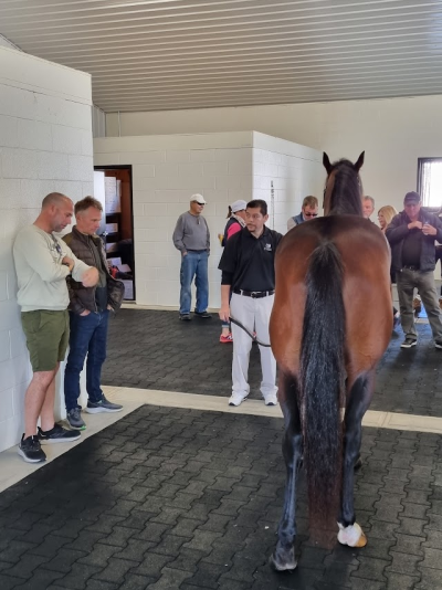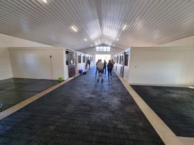 Hingstestalden var ny – lys og venlig – skridsikkert gulv og eget laboratorium og man havde samlet de hingste, som Diamond Creek ellers har opstillet i forskellige stater.