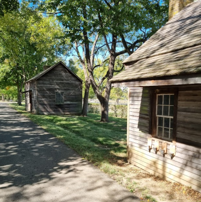 Først passerede vi kontoret, hvor jeg mindes at der i gamle dage var en statue af paceren Bret Hanover, og nu kommer jeg i tanker om, at der på området er to fredede slave-huse!