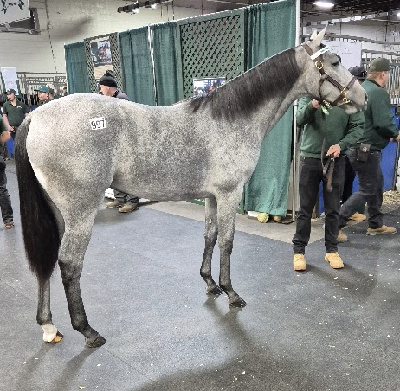 Blandt pacerne var der denne gråskimlede hoppe, Smokin Grey , der også solgtes for 25.000 dollars.