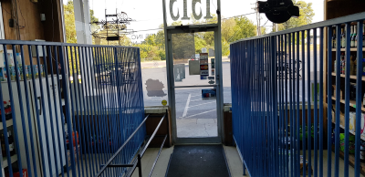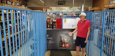 Du kommer i butikken, og er omgivet af gitter på tre sider.
