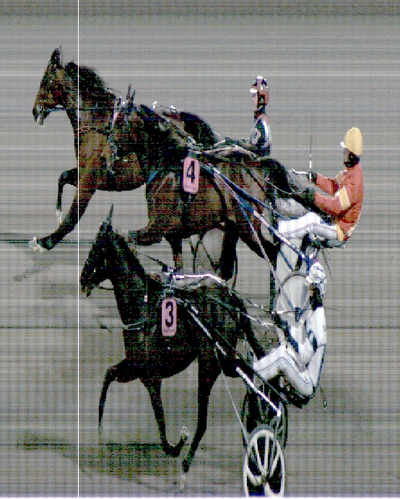 Førende Ranby Lavec med Joakim Løvgren blev først angrebet af vinderhullets Luca Barosso med Johan Untersteiner, men denne galoperede med små 100 meter igen.