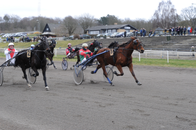 Et stykke ind i oplรธbet brรธd hesten udvendigt for Angelfromheaven et spor ud i banen, og det benyttede erfarne Dennis Kristiansen sig lynhurtigt af.