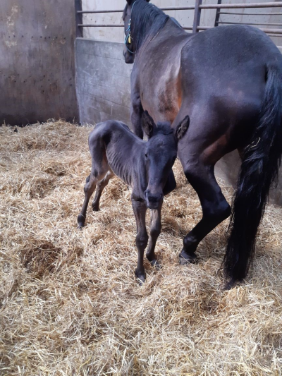 Hos Stig B. Norsk i Aalborg har den italienskfødte hoppe, Olanda Lavec (Credit Winner) fået et sort hoppeføl efter Wishing Stone.